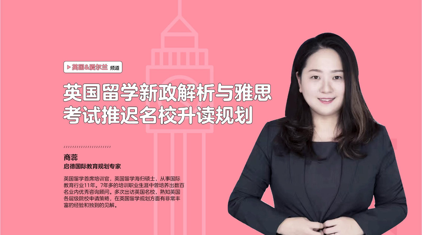 近期,在启德教育第一届线上国际教育展,英国留学频道,来自于启德留学英爱项目的国际教育规划专家商蕊老师,就英国脱欧对中国留学生的影响,以及雅思考试不断延期的情况下如何规划英国留学这两个热点问题,提供了系统分析与专业建议。商蕊老师是一位英国海归硕士,在国际教育行业从事留学规划相关工作11年,最近7年一直在启德教育总部从事培训工作。