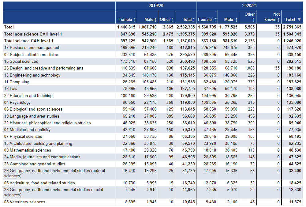 《英国高等教育大数据》(Higher Education Student Statistics: UK,以下简称HESA)于1月25日公布了最新的英国高等教育统计数据,包括大学录取专业数据、英国留学生数据等。