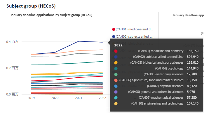 根据这份报告,截止至2022年1月,申请英国本科的人数达到了610,720人,相较去年同期降低了0.9%。