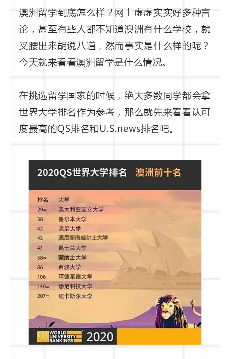 澳洲留学到底怎么样?网上虚虚实实好多种言论,甚至有些人都不知道澳洲有什么学校,就叉腰出来胡说八道,然而事实是什么样的呢?今天就来看看澳洲留学是什么情况。