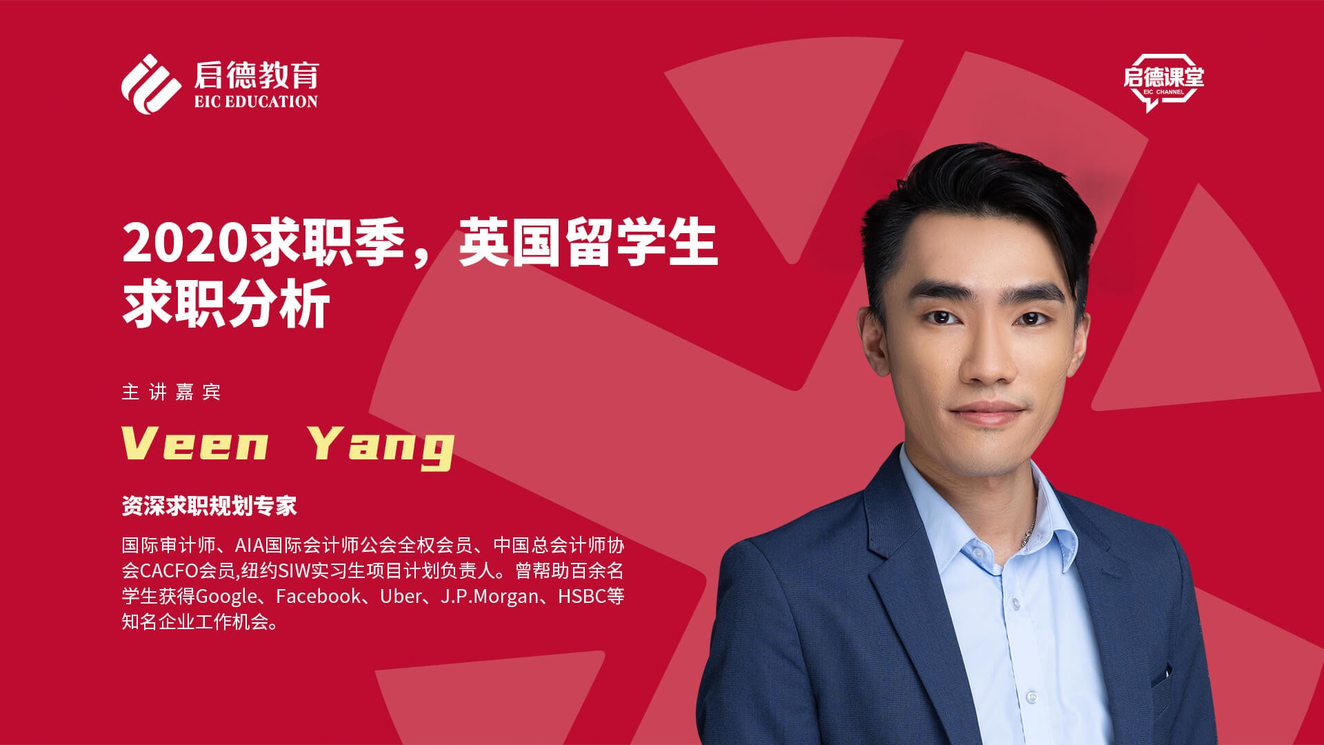 作为国际审计师、AIA国际会计师公会全权会员、中国总会计师协会CACFO会员、纽约SIW实习生项目计划负责人,Veen曾帮助百余名学生获得Google、acebook、Uber、J.P.Morgan、HSBC等工作机会,并获取H1B工作签证。以金融行业为例,他分析了金融市场上的两类不同的职业:在金融机构工作与做金融工作。