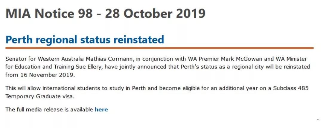2)只要在偏远地区读书超过2年并完成学业的小伙伴(当然新政之前就在此读书的也算数),就可以多拿5分的移民加分,这5分可用于491、189以及190。