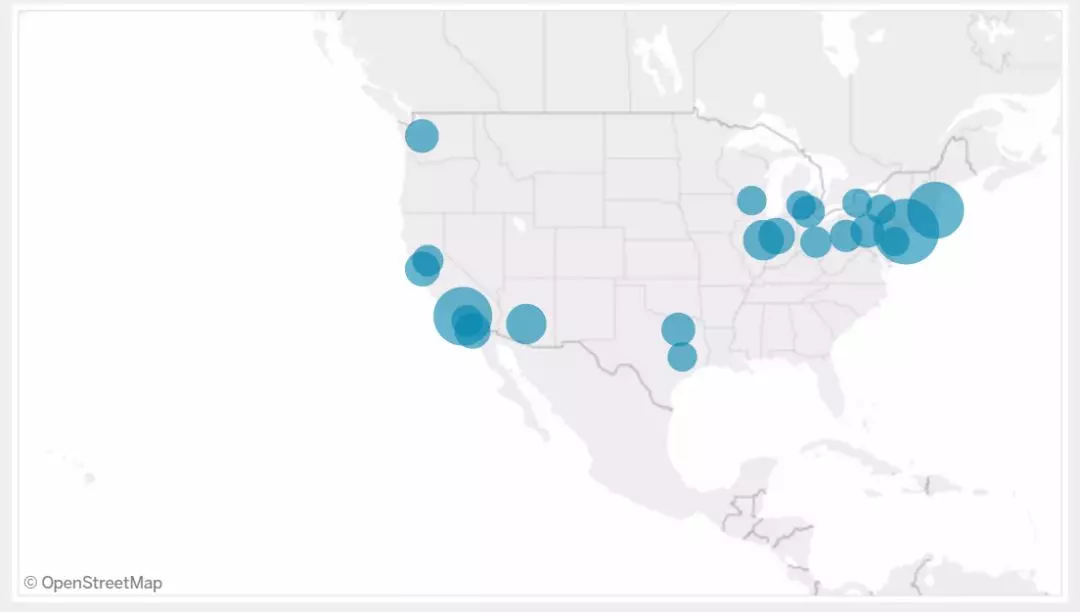 从国际生人数最多的25个大学分布来看,集中在美国东北部地区和加州所在的西海岸。