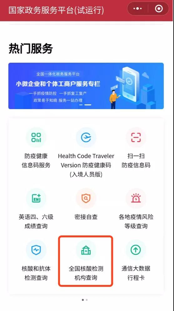 Step 2: 点击全国核酸检测机构查询