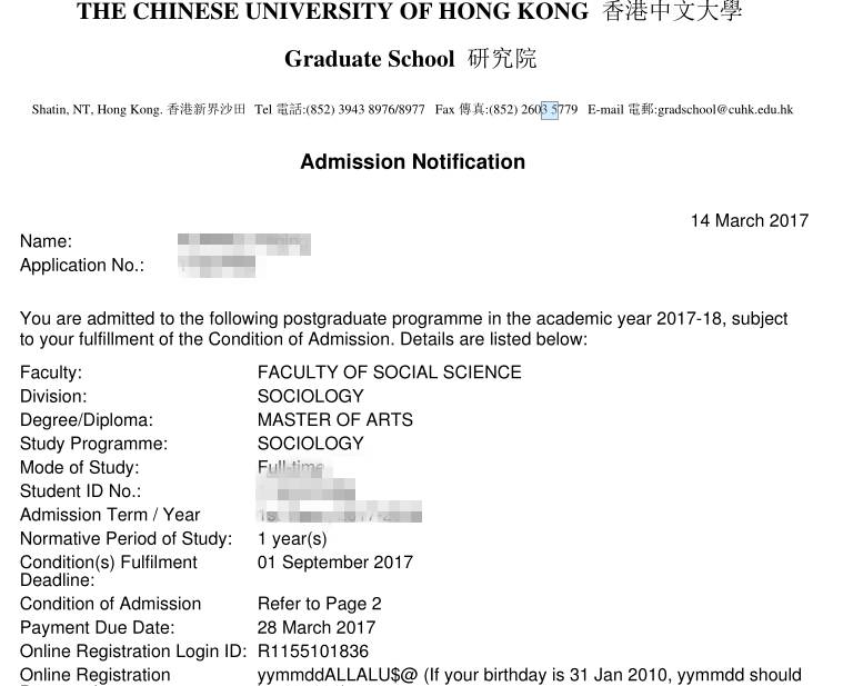 正因为这其中和H同学的有效沟通,以及文书老师的深厚功力,充分的阐述了社会学与设计学的关联,让H同学顺利的拿到笔试机会,在文案老师的指导下,随后又成功通过面试,最终过关斩将顺利的收获了香港中文大学的社会学专业的offer。