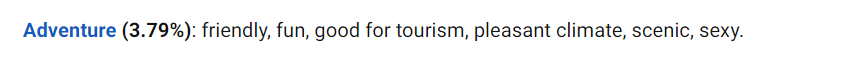 其反映的是一个国家友善,有趣,适合旅游,气候宜人,风景优美,性感。