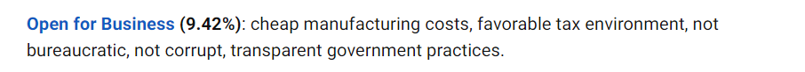 其反映的是一个国家有廉价的制作成本,有利的税收环境,不官僚,不腐败,透明的政府惯例。