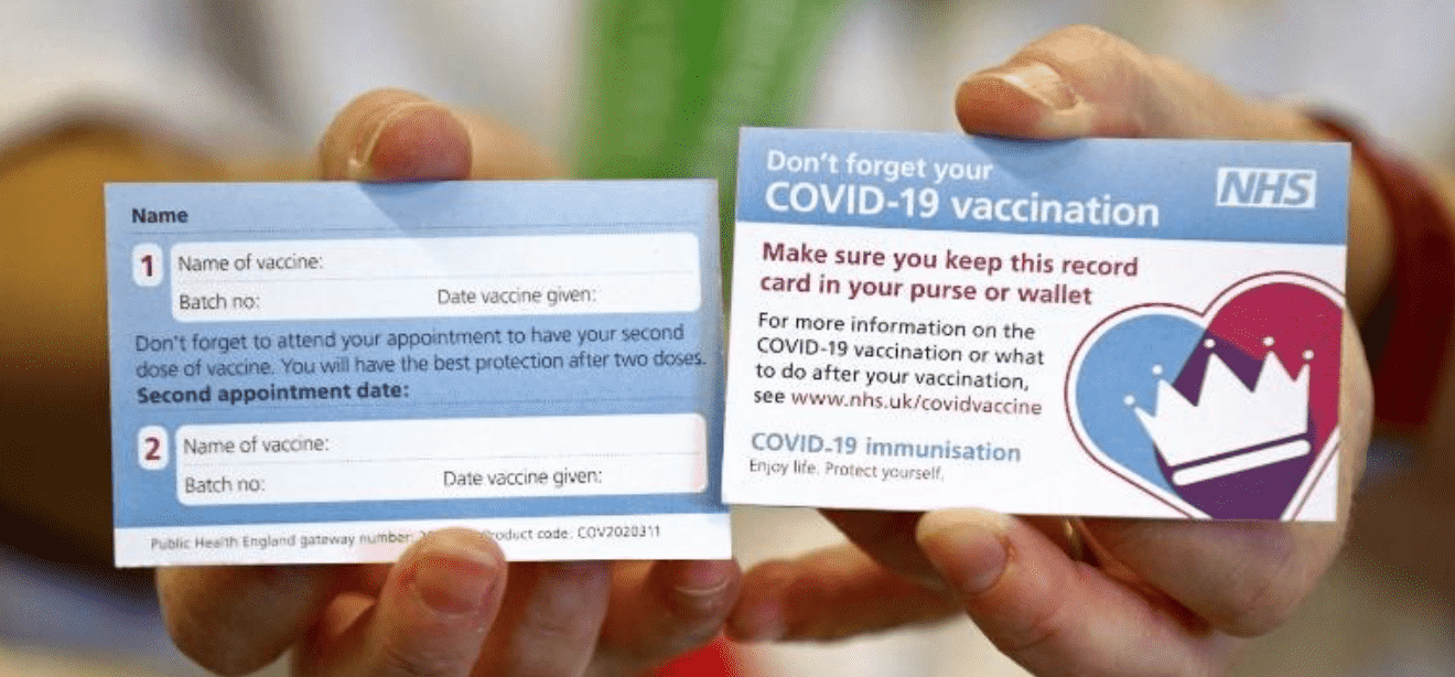 同时,NHS会给所有接种过该疫苗的人群发放疫苗接种卡(如下图所示),接种卡主要用于提醒大家进行第二针接种,据英国媒体报道,该接种卡日后还有可能成为自由进入公共场所的“身份证”。