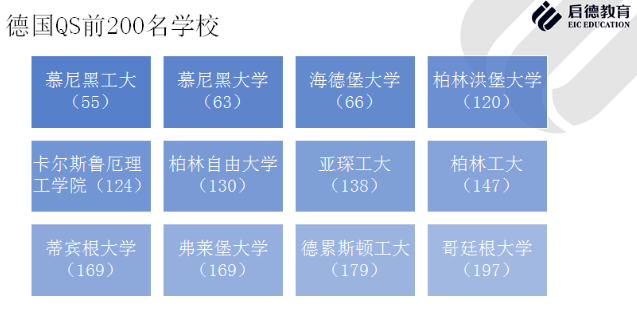 整体而言想要入读这类排名较前的学校,除了成绩之外,语言要求基本是德福要求16分,还需要相关的实习证明,课程描述等重要申请材料。整体而言想要入读这类排名较前的学校,除了优秀成绩之外,语言要求基本是德福要求16分,还需要相关的实习证明,课程描述等重要申请材料。每年都有学生通过启德申请到德国这些世界排名较前的院校。