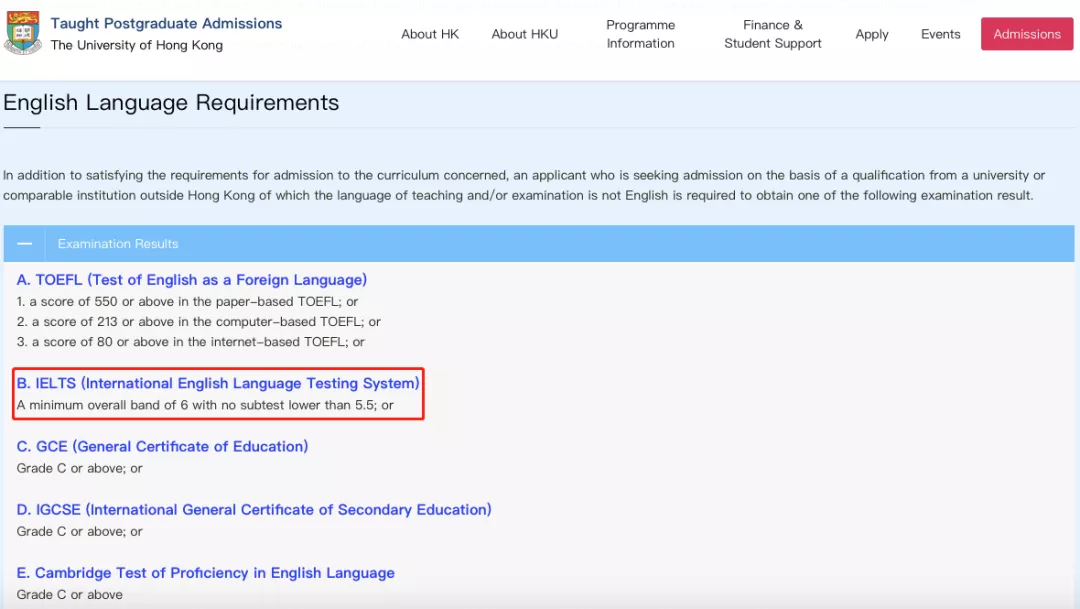 港大商学院除了MBA之外的专业全部降低了对雅思成绩的要求,调整为雅思6.0(5.5)。