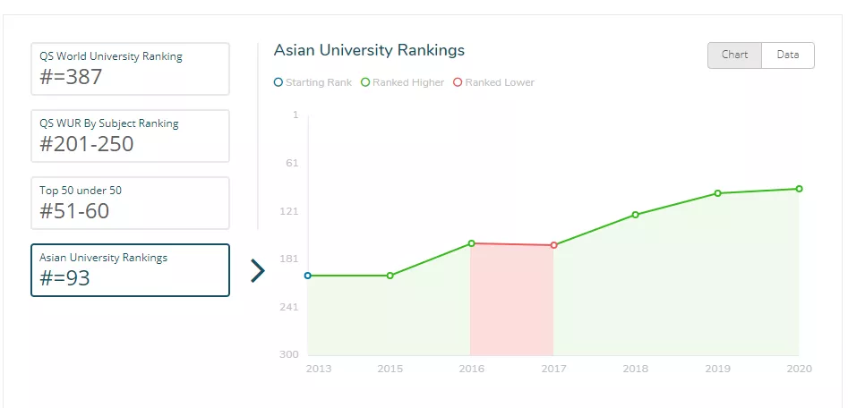 综合排名虽然比香港和新加坡都稍有逊色,但需要考虑到其建校时间仅不到40年,有这样的进步也是非常不错。