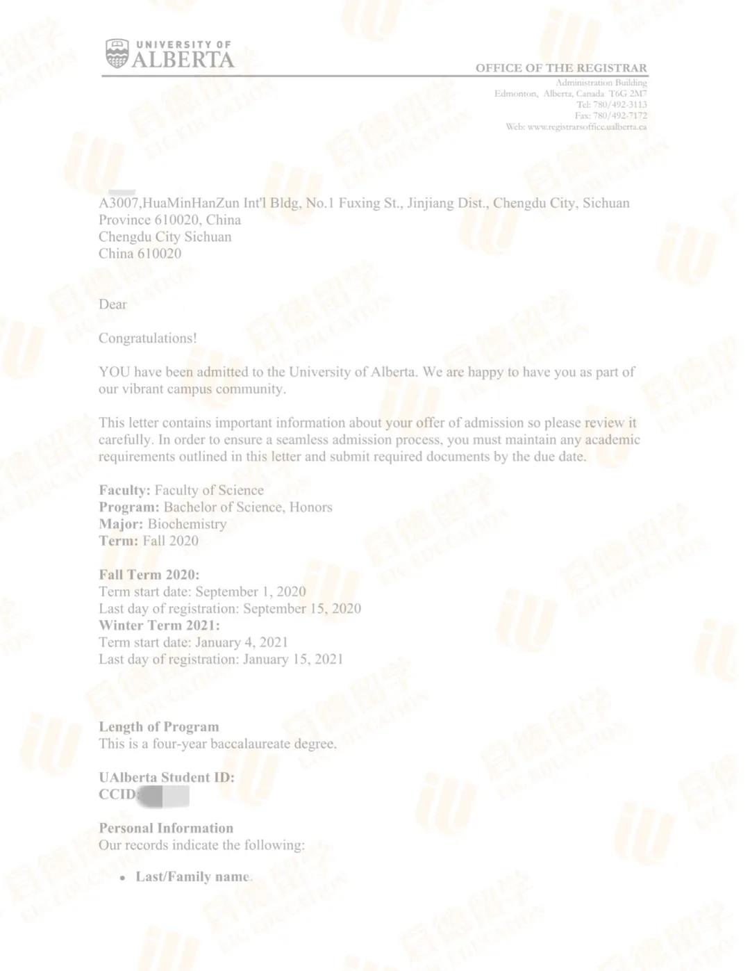 3. Bachelor of Science with Honors in Biochemistry(阿尔伯塔大学)
