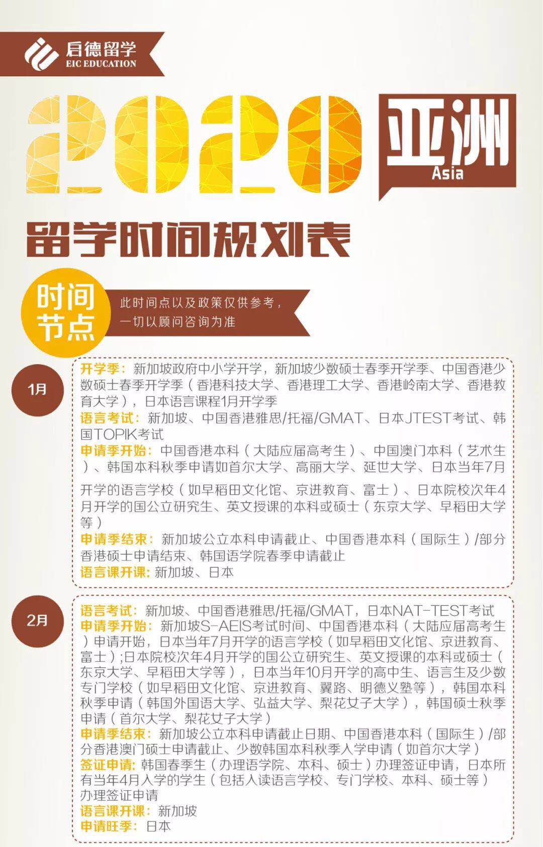 2020年亚洲留学时间规划表出炉