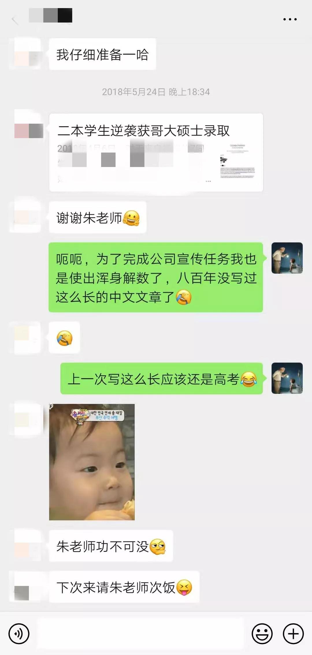但是在沟通后Z同学表示想要试一试,在原定的申请院校中加入了哥大。无论结果如何,都给自己一次尝试的机会。考虑到Z同学的情况,Taylor老师建议他在大三暑假尽力找一份含金量高的实习来提高自己的申请背景。功夫不负有心人,Z同学在暑假进入了行业内最顶尖的研究院实习,并掌握了一款国内十分少见的应用软件技术。在递交申请后,Taylor老师认为对于软件的掌握是Z同学简历上的亮点,便帮助Z同学一起准备面试中可能会提到的关于实习经历的问题。幸运的是,凭借着对于这款应用软件的熟练,Z同学通过了哥大的面试,成功获得了这枚来之不易的offer。