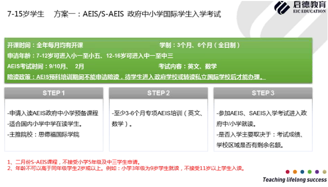 AEIS每年10月和2月都可以考试,考不过的话可以转到私立学校或者国际学校入读,同时继续培训AEIS,考过后再申请插班到公立学校即可。