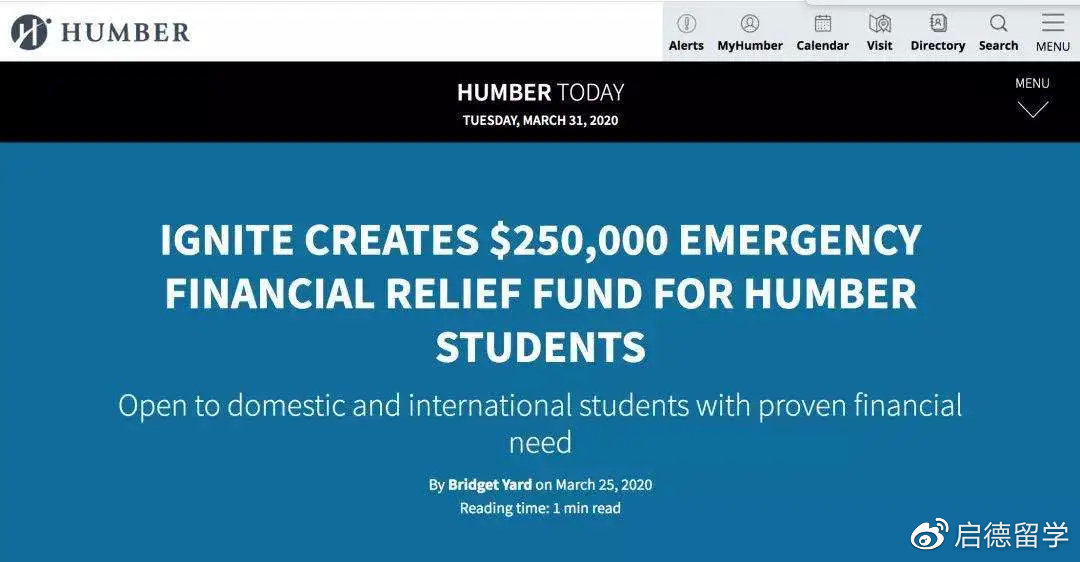 汉博学院的学生会IGNITE受到学校和政府2500万加币的支持,现在也开设了基金帮助在校本科生因为疫情而面临的经济负担。有需要的学生可以在网上直接申请~