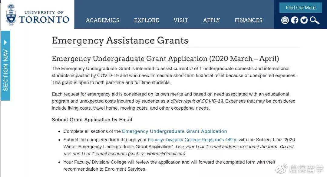 卡尔顿大学则是选用申请表格的方式为需要资金补助的学生解燃眉之急。不过学校申明资金有限,只有为在特殊情况下遇到紧急危机的学生做出援助。