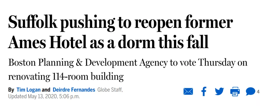 除此之外,萨福克大学还会将去年斥资6350万美元买下的Ames Hotel投入使用,作为学生宿舍的一部分。
