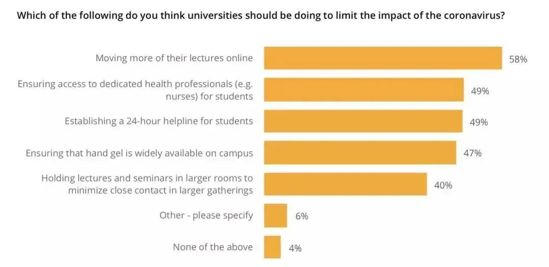在本次报告中,QS也增加了一个新的调查结果,留学生们是否有兴趣在即将到来的学年以网课的方式进行。