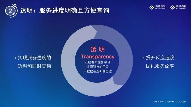 透明度的探讨无疑是近两年留学行业的一大热点,也是不少留学群体所关心的问题,随着互联网技术的普及和全球交流的日渐频繁,信息不对等早已不是留学机构固守的竞争优势。此次服务升级,启德留学明确地将“透明”写入服务理念,也是希望以此表明立场:启德留学在办理客户申请的过程中,从方案确定、学校申请到签证申请,每一个流程都透明可查。