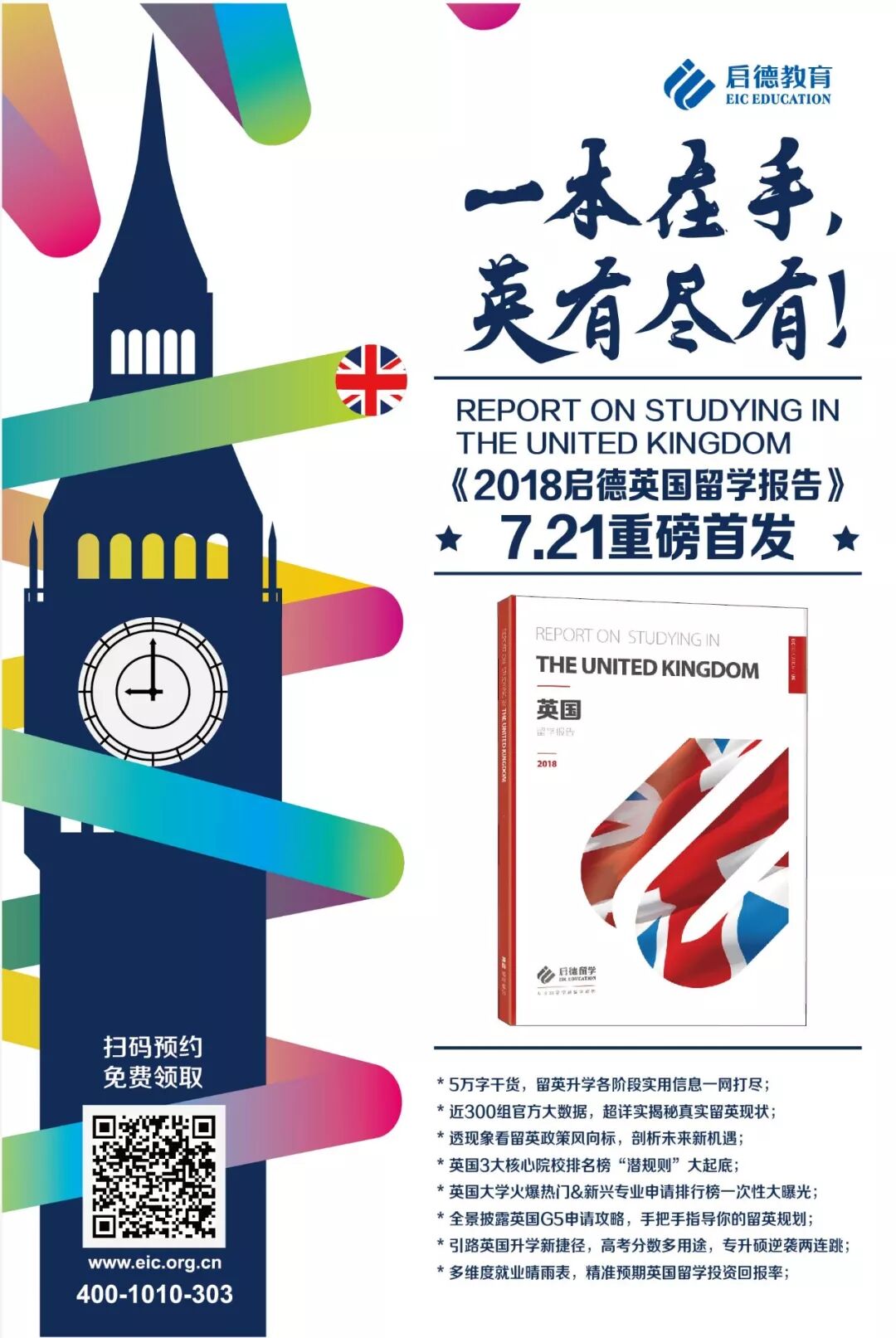 7.21“2018启德英国留学报告发布会暨英国名校升学指导会”,您可以在全国24个城市同步预约领取!