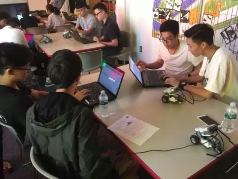 第五天,大家分组在不同的时间段内参与了三个不同的workshop。其中,同学们最为受益匪浅应该是机器人编程课。