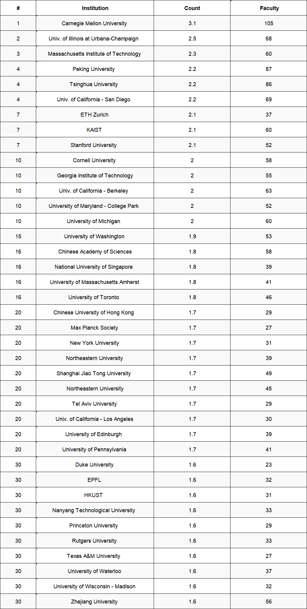 这份排行榜不同于常见的U.S.News排名,U.S.News排名完全以声誉为基础,依赖于向各部门主管和研究生院主任进行调查。而这项排名则主要依据全球各个高校在计算机领域的顶级学术会议发表的论文数量,这样能够帮助人们更好地了解全球各个教育机构在计算机科学领域体系与师资方面的实力。