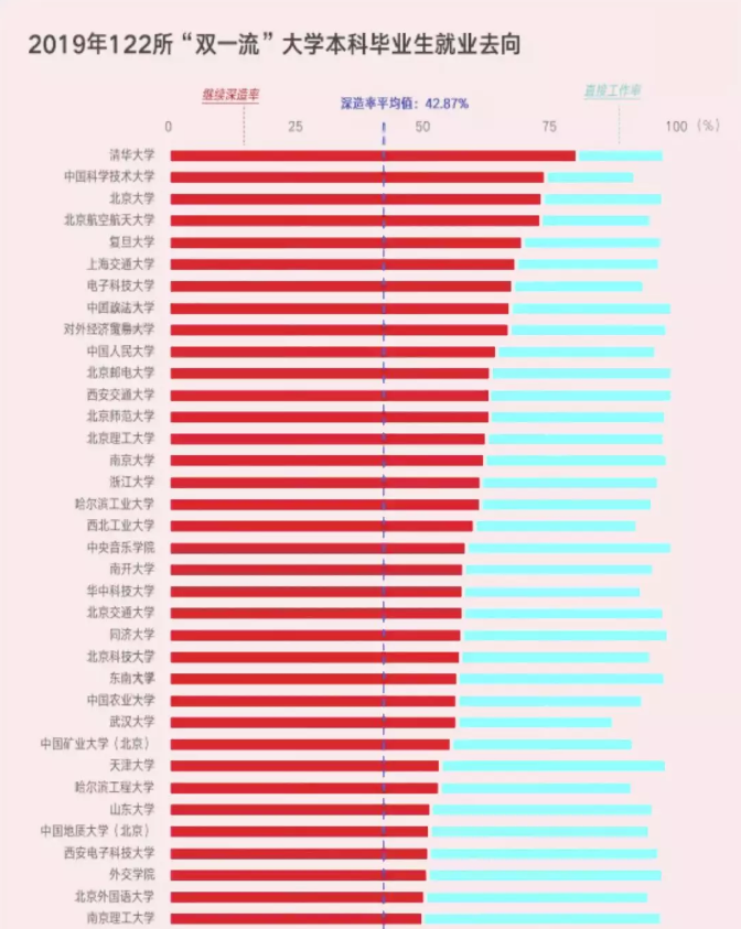 优等生清华大学的学子继续深造率竟然高达80.4%。