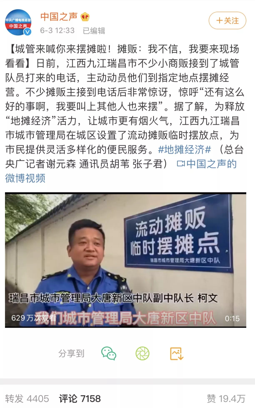 地摊小贩从每天战战兢兢在夜市的某个角落摆摊,到光明正大的在城管门口摆摊,仿佛在一夜之间重获新生~