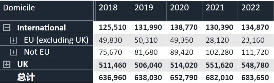今年2022申请季截止6月底,共有23,160来自欧盟的留学生递交申请,自2020年英国脱欧后,欧盟留学生申请量就遭遇断崖式下跌。
