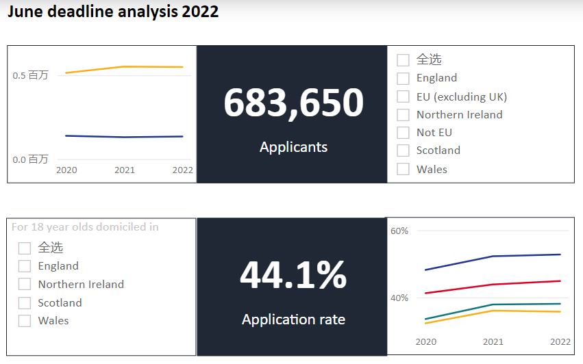 根据UCAS发布的数据,截止到2022年6月30日,共有683,650人通过UCAS递交了英国本科申请,相比较2021年,同期多了1600多人??