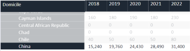 中国学生申请上涨10%,下图是截止6月30日,2018-2022年中国大陆学生申请数据??