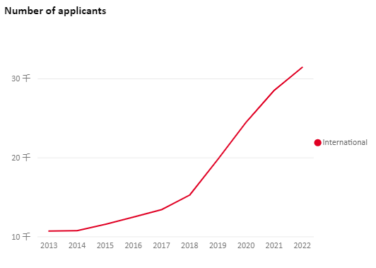 2022申请季总体申请人数上涨,尤其是非欧盟国际生的申请人数暴增,对中国留学生来说竞争只会越来越激烈。