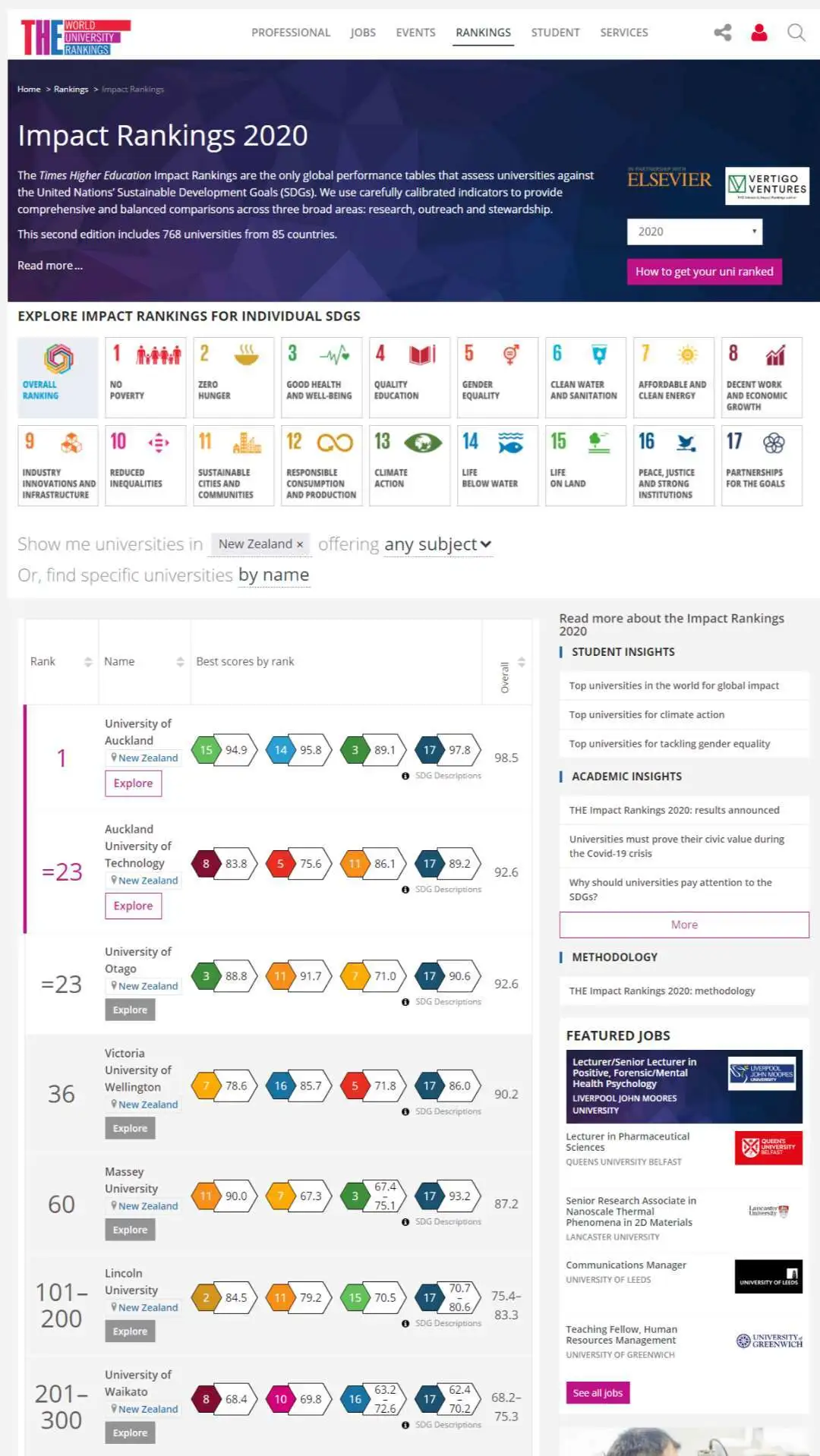 泰晤士高等教育(THE)世界大学影响力排名,奥大蝉联NO1,5所大学排名前百!