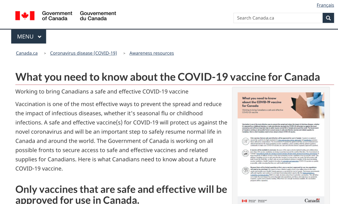 小编为大家详细阅读了加拿大政府。最新发布的有关新冠疫苗的文章