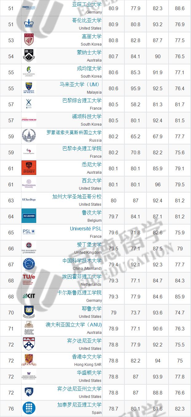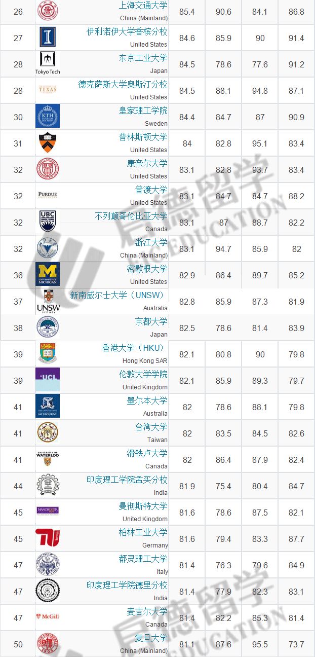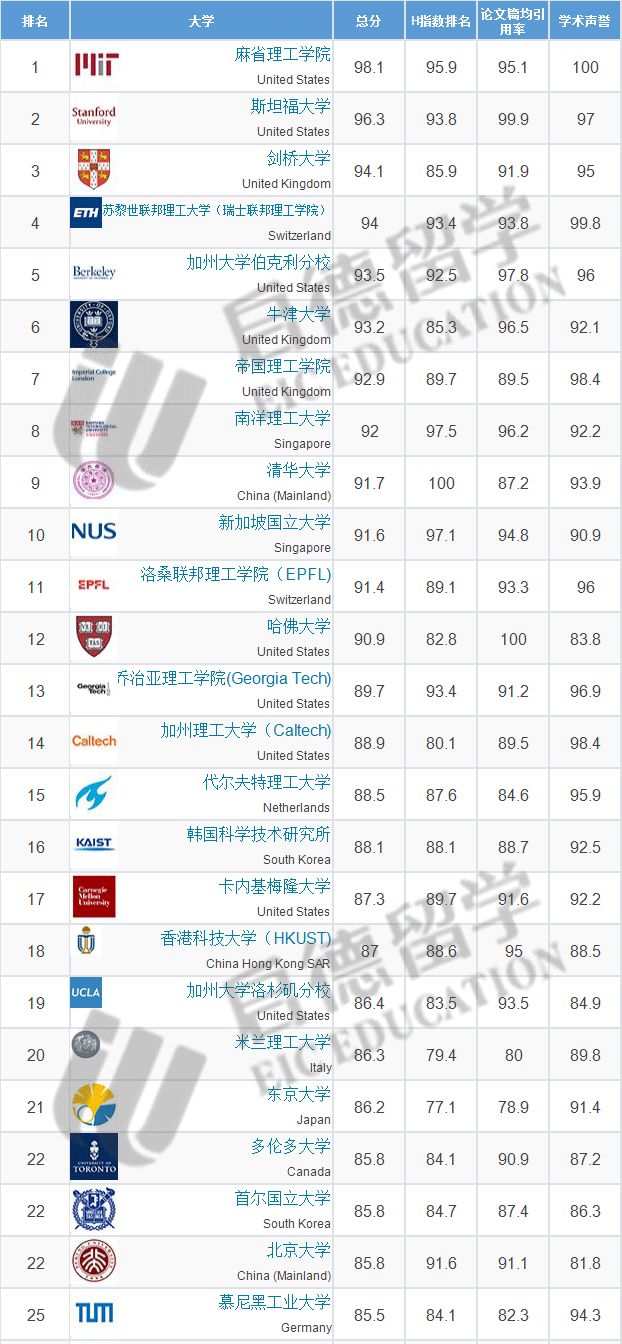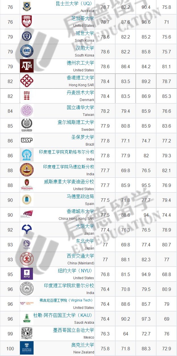 这里为大家整理了2019-2020的QS工程与技术排名供大家参考: