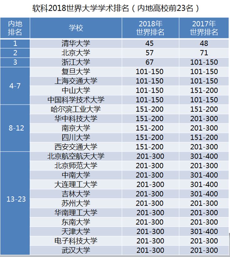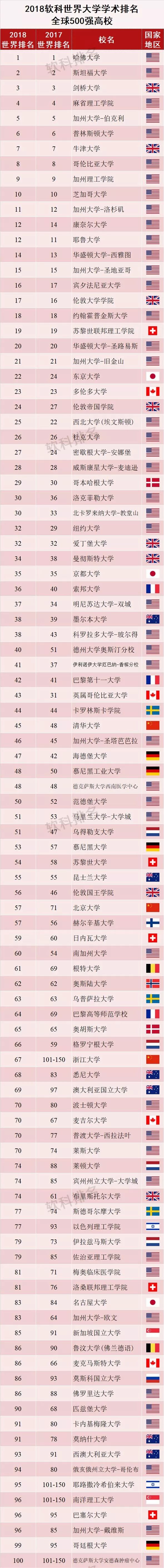 近日,2018年最新的世界大学学术排名(ARWU)出炉!