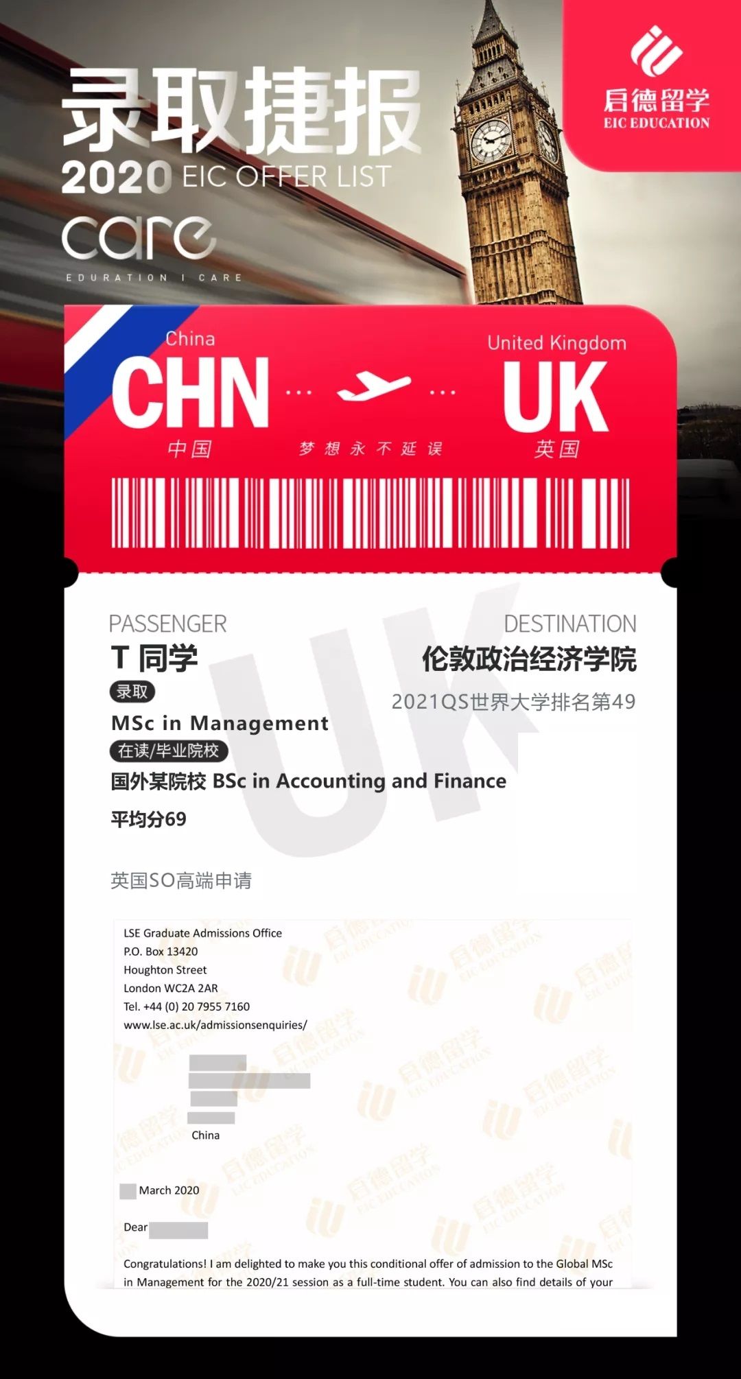 录取院校及专业:伦敦政治经济学院MSc in Management