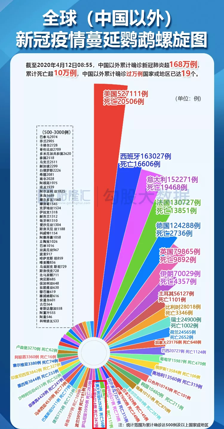 在这张全球确诊病例对比图中,小启都差点找不到澳洲了~
