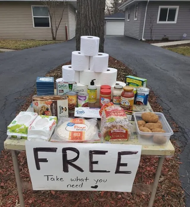 普通民众争先捐赠厕纸和口罩,摆在门外让有需要的人领取。