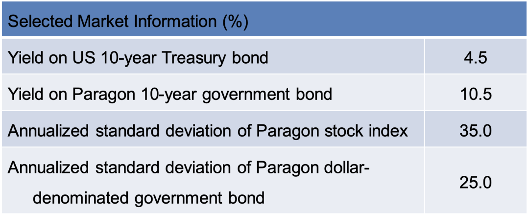 An analyst gathered the following information about the capital markets in the United States and in Paragon, a developing country.
