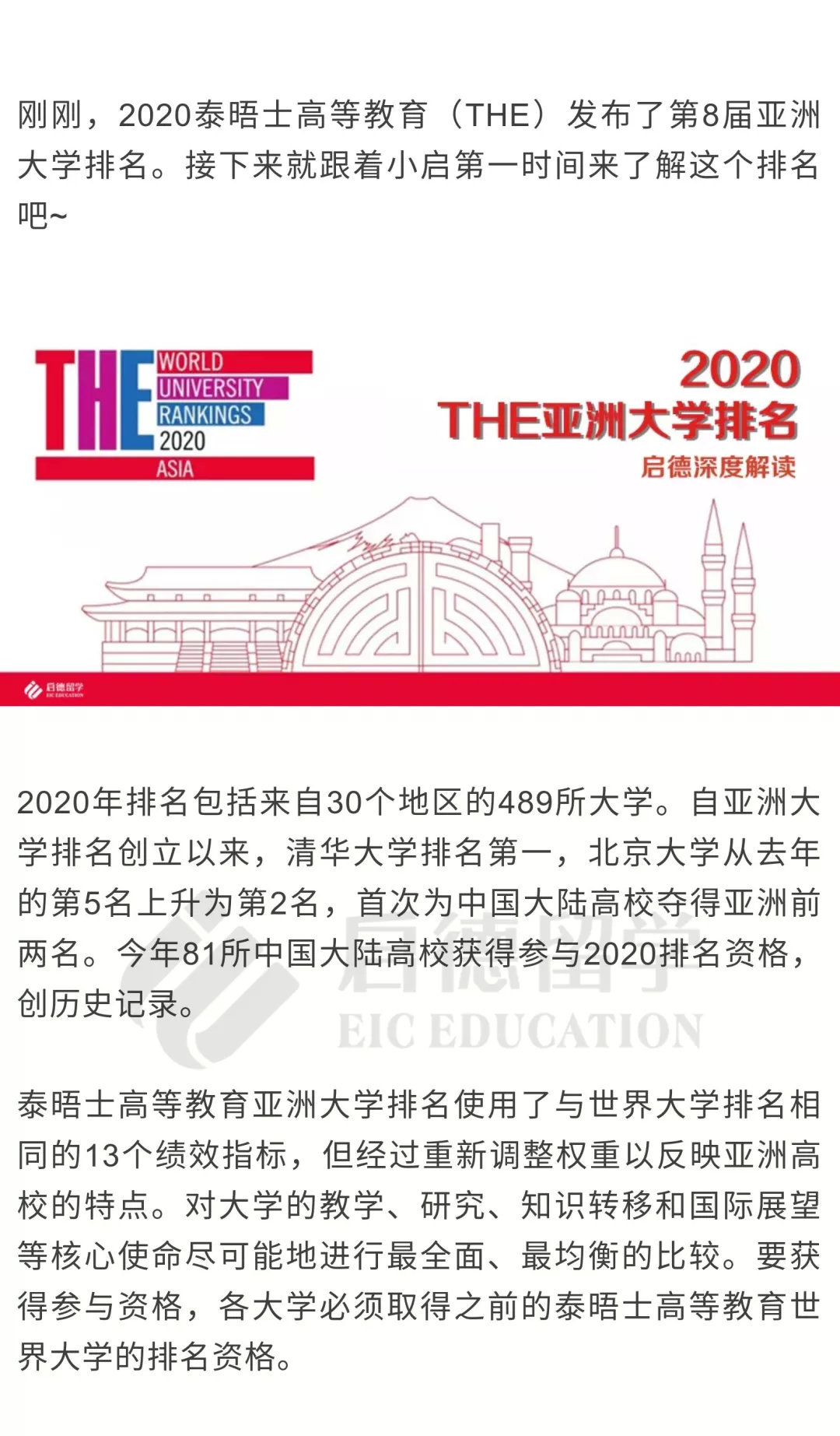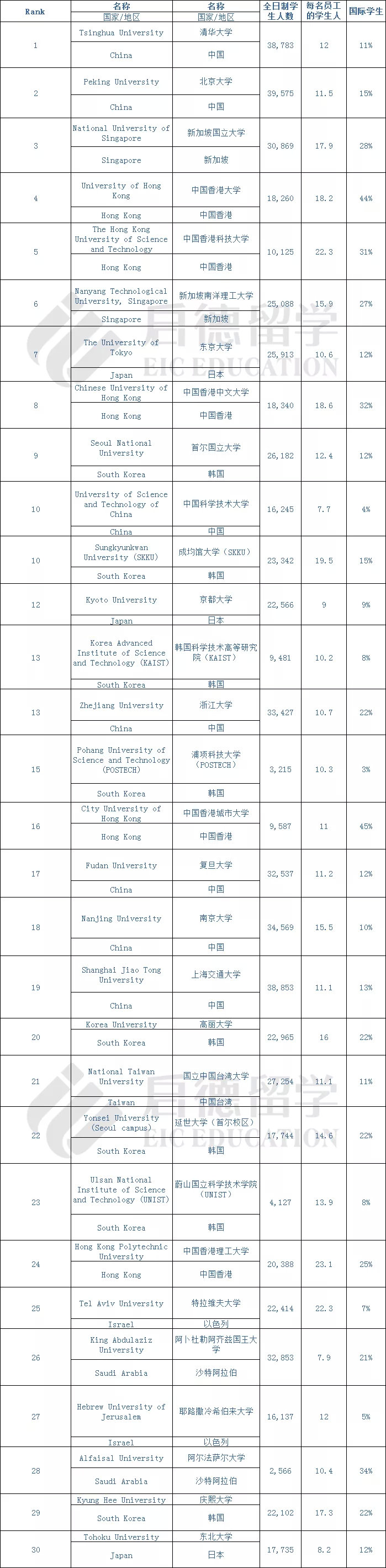 2020THE亚洲大学排名发布!清华第一北大第二新加坡国立大学第三