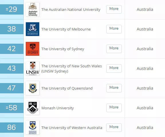 2020年QS世界大学排名-澳洲部分大学排名概览