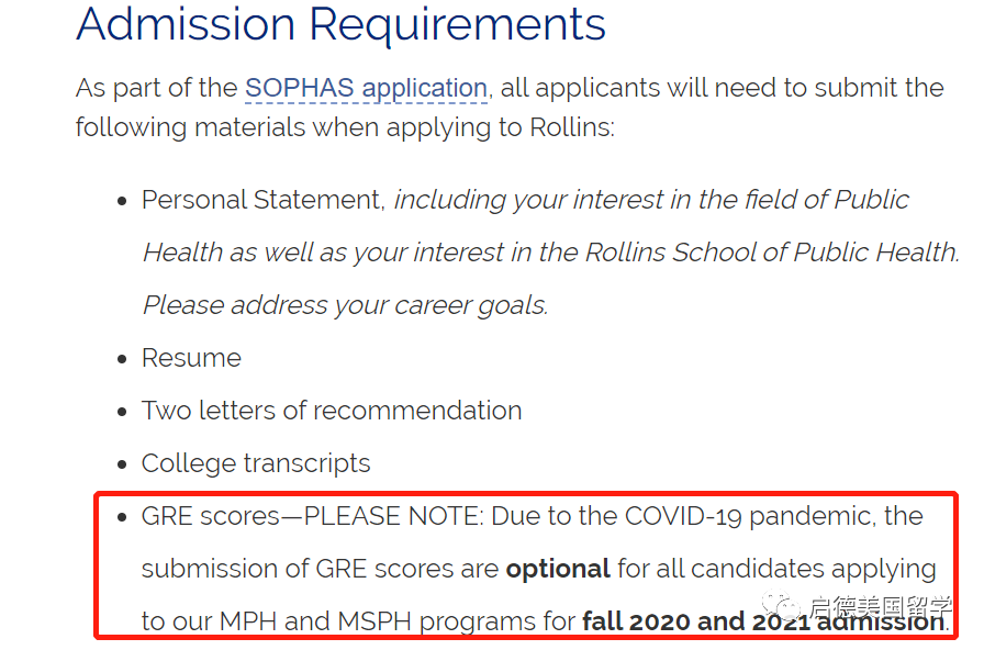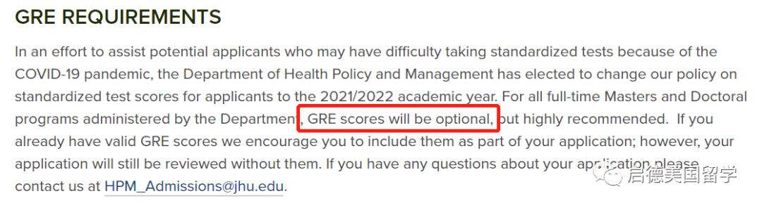 2. 针对2021Fall申请人,埃默里大学公共卫生硕士项目不强制要求提交GRE成绩。