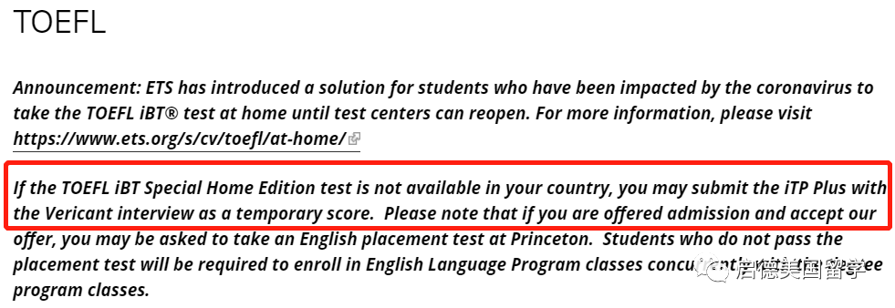 *请注意,如果你被录取并接受录取,你可能会被要求参加普林斯顿大学的英语分级考试,未通过入学考试的学生将被要求在修读学位课程的同时修读英语语言课程。