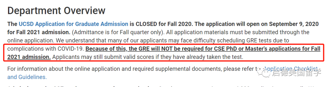 针对2021Fall硕士和博士项目申请人,加州大学圣地亚哥分校计算机科学与工程系宣布取消GRE要求。