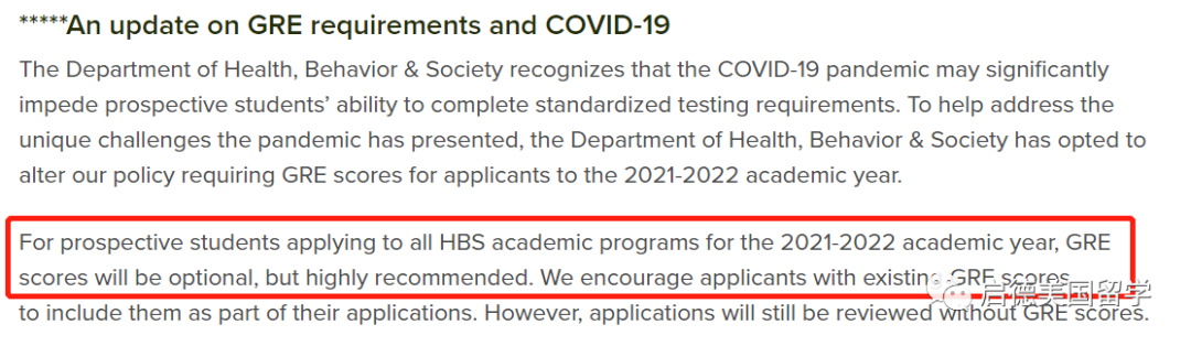 2. 公共卫生学院卫生、行为和社会系、健康政策与管理系宣布针对2021Fall的申请人,不强制要求提交GRE成绩,没有GRE成绩的申请同样会被审阅