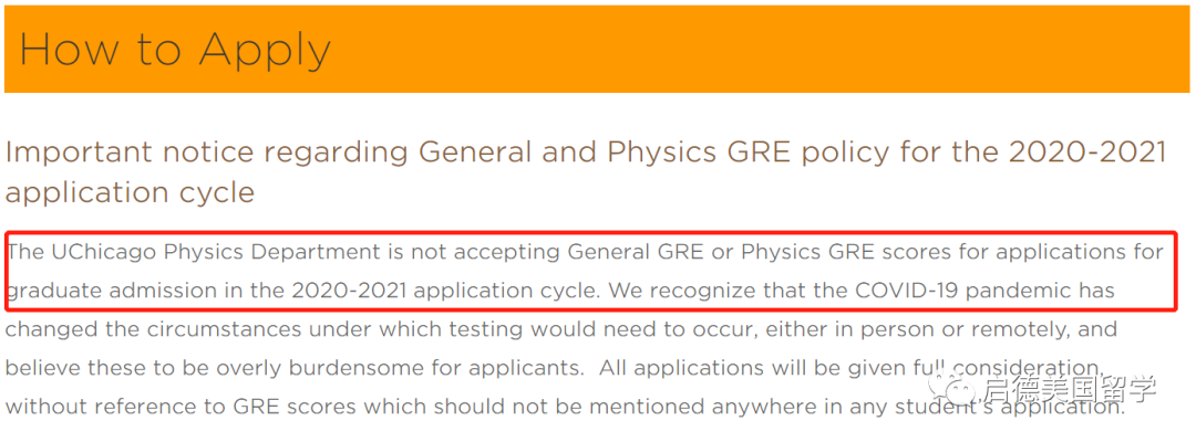 芝加哥大学物理系宣布2020-2021申请季无需提交GRE成绩