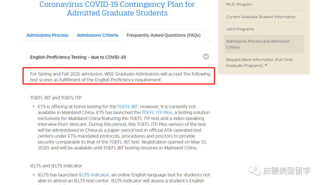 1. 接受多种TOEFL/IELTS成绩:如果所在国家/地区不提供托福网考家庭版考试,可以将iTP Plus和维立克面试成绩一起作为临时成绩提交;雅思方面可提交IELTS Indicator作为临时成绩。