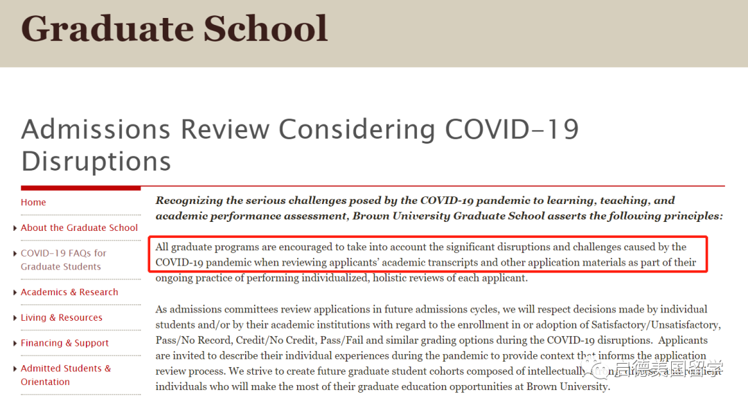 布朗大学声明所有研究生项目在审阅申请人材料时需考虑疫情带来的干扰和挑战。